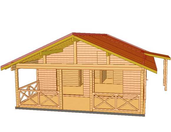 Opis: Exhibit for Solun fair 2007. This house is 71sqm, with sandwich walls 70mm wood + 50mm insulation + 30mm wood and thermo insulation in floor and roof.